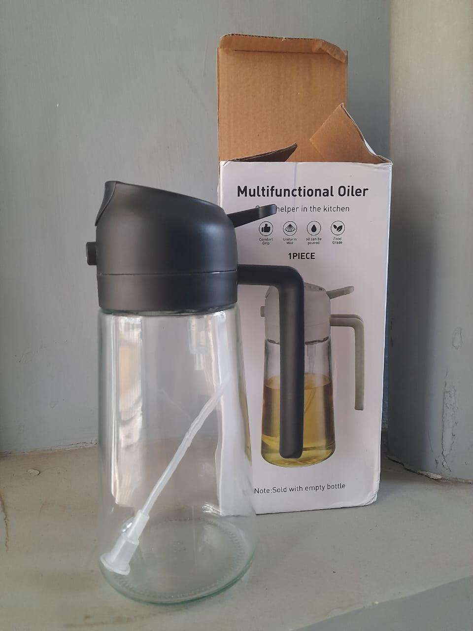 - DUAL FUNCTIONALITY: Features both a precise sprayer and traditional pouring spout in one elegant design for versatile oil dispensing.