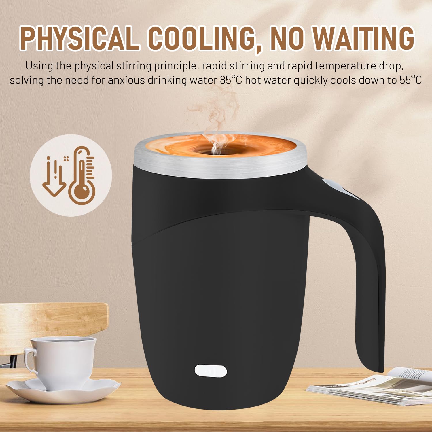 - Powerful Cooling Function: The magnetic coffee stirrer cup provides rapid cooling function, using advanced cooling technology to quickly reduce the temperature of the beverage from 85 ° C to 55 ° C, ensuring a better taste of the beverage